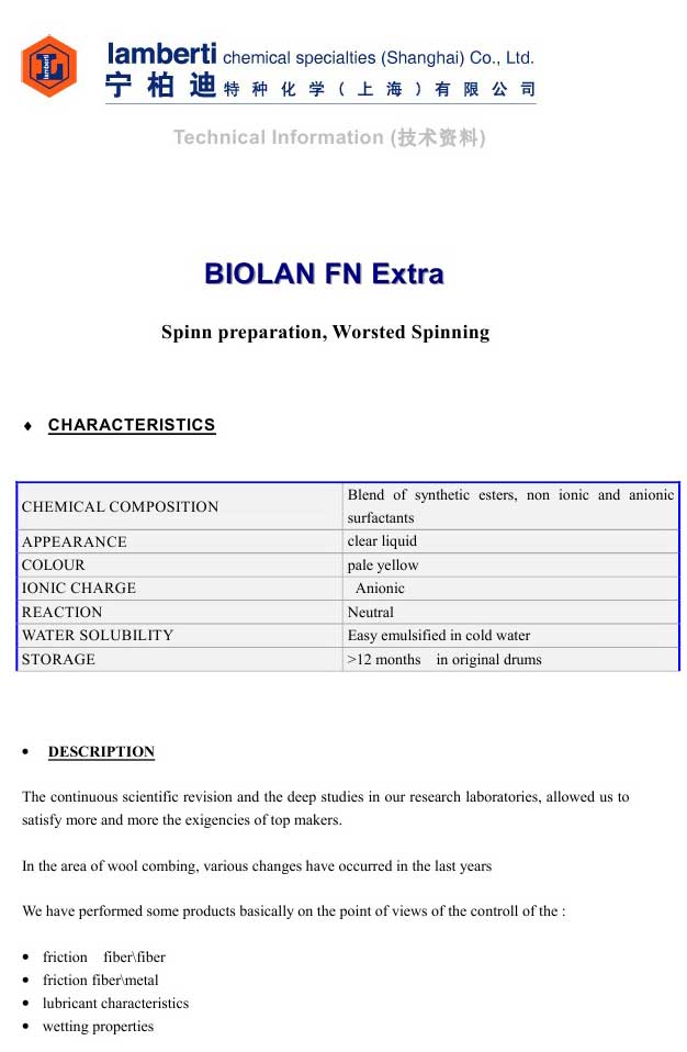 Sirrix® ANTOX liquidThe new chelating dispersant can be widely used in the continuous treatment of cotton and linen fabrics to prevent catalytic damage and the oxidation of cellulose, and also helps tLufibrol ® FE