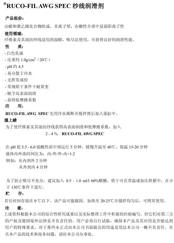 RUCOGEN FWK Refining DetergentProduct Components: Alcohol Ester Compounds, Non-IonicPriority Usage Areas: Suitable for low-foaming cleaning and penetrants of various fibers, with excellent dispersion,RUDOLF